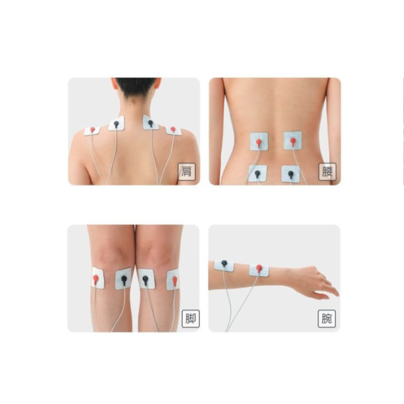 標準付属品:電気刺激用導子コード ELR-6001 (4本)、取扱説明書 (1部)、電気刺激用ゲル導子(50×50mm) ELR-6002 [2袋(8枚)]、リチウムイオン電池 GD6000-002 (1個)、