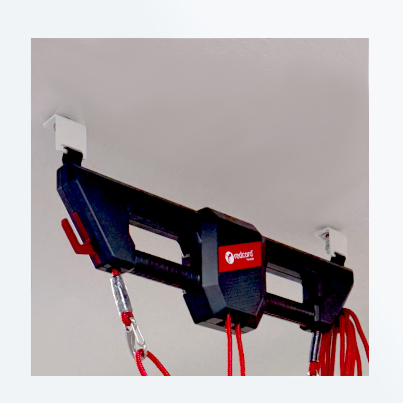 リハビリテーションや運動療法に用いられる、天井から吊り下げられたロープを使った運動器具レッドコードを安全に固定します。